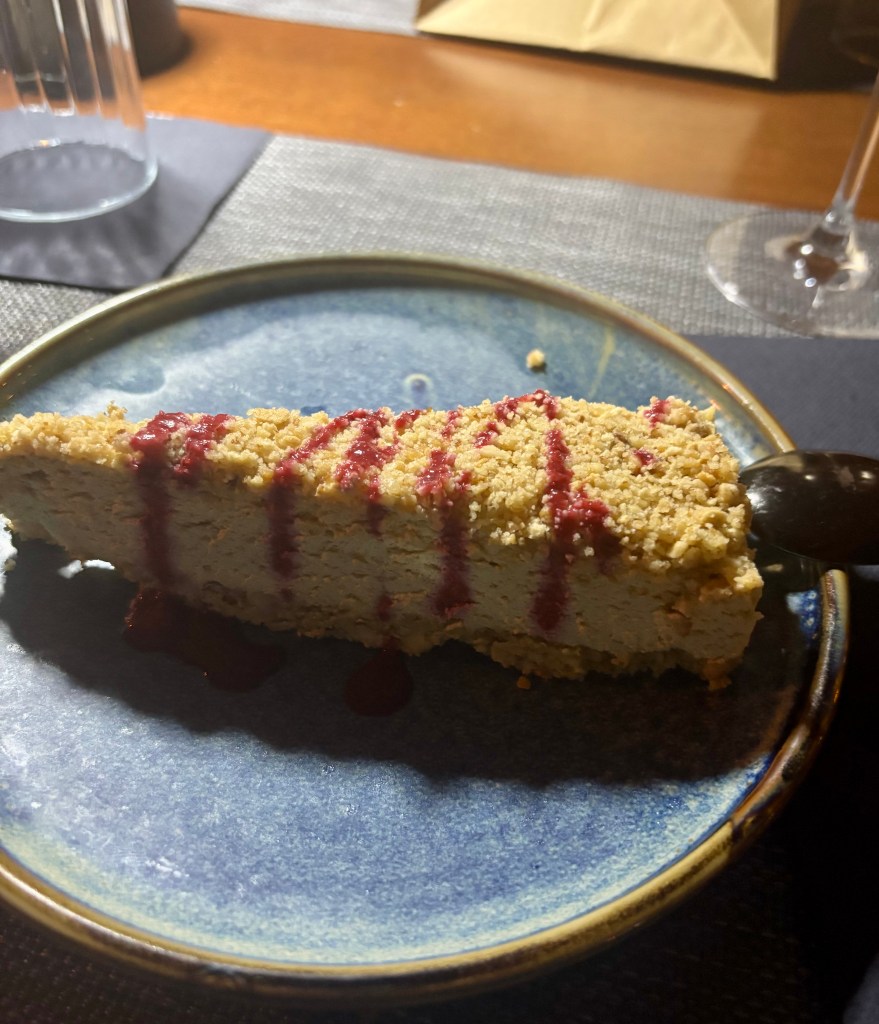 Naravno, nakon glavnog jela uvijek treba pojesti nešto slatko pa sam za desert odabrala Frilled-necked lizard, cheesecake s pireom od malina na hrskavom crumbleu koji se doslovno topi u ustima. Lagano, kremasto i osvježavajuće – idealan završetak večere.